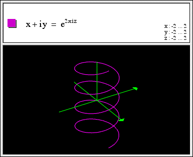 A complex function of a real parameter can be drawn as a curve in 3D.
