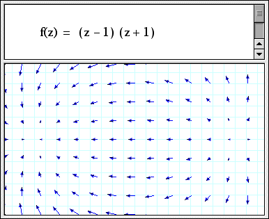 A complex function of a complex variable can be drawn as a 2D vector plot. In the image above, the vectors represent the value of the complex function at each point.