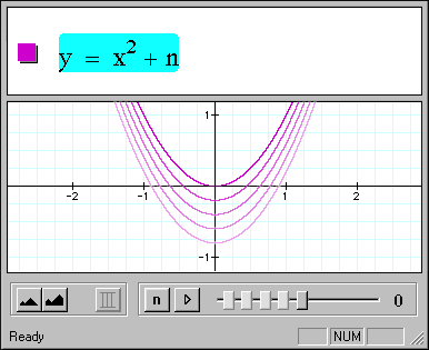 Any equation can easily be turned into an animation. The slider controls the value for n in this equation. Equations can be animated on any variable.
